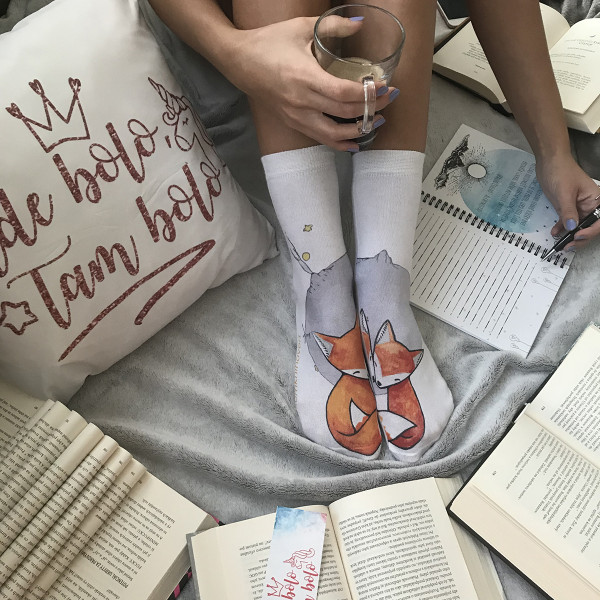 Na výber boli dva balíčky, pričom rozdiel bol vo vankúšiku a ponožkách, ja som si ten môj vybrala práve kvôli ponožkám, pretože ponožky univerzálnej veľkosti pre ženu a s motívom Malého princa je pre mňa úplne najlepší darček. Už z blogu môžete vedieť, že Malý princ je moja najobľúbenejšia kniha, preto nebolo pochýb, ktorý knihovertský balíček bude ten môj. Ale tieto si budem “šanovať” a nosiť asi iba pri čítaní knihy, keď nemusím chodiť, aby som si ich náhodou nezodrala .