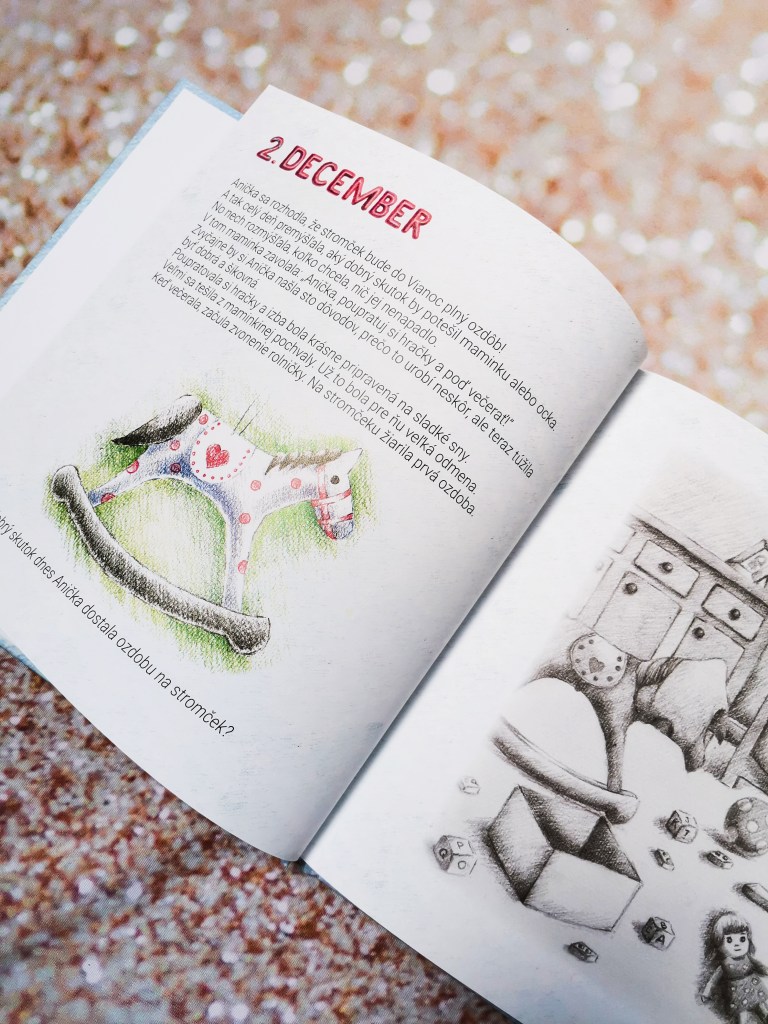 V závere knihy nájdete aj recept na medovníkové cesto, ktoré robila Anička v príbehu. Mňa veľmi potešili noty s textom na vianočné koledy. Rolničky, rolničky a Tichá noc. Ak máte hudobný talent, môžete si ich s deťmi zahrať alebo aspoň zaspievať. Nechýbajú ani tradície, ktoré sa vykonávajú počas Štedrého dňa. Musím sa priznať, že niektoré boli aj pre mňa nové. V závere knihy nájdete tip na obrátený adventný kalendár, ktorým môžu deti obdarovať niekoho, kto je na tom v živote horšie ako oni.