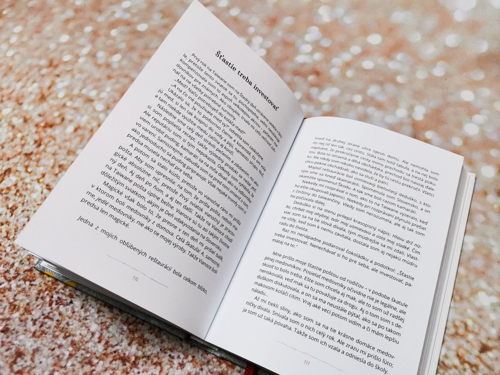 Veľmi som sa tešila na zápisky autorky o návšteve priateľov z Taiwanu na Slovensku. Presnejšie, na východnom Slovensku, čo je pri všetkej úcte tiež záruka zábavy pri čítaní. Pokojne by som zniesla aj viac príbehov zo Slovenska. Premýšľala som nad našou krajinou z iného uhla pohľadu. Veci, ktoré sa nám zdajú normálne, môžu byť pre cudzinca obrovským kultúrnym šokom.