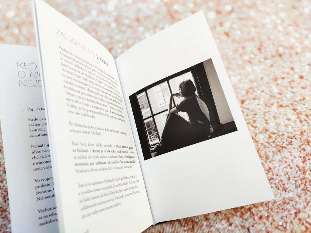 V knihe ma veľmi bavili články o vzťahoch. Láska, nevera, milenci. Mentalita Parížaniek je v tomto smere iná ako sme zvyknuté. Boli chvíle, keď som pri čítaní krútila hlavou, na druhej strane som ich obdivovala pre ich voľnosť a nespútanosť. Byť svojim spôsobom drzá, snobská, ale aj zraniteľná. Takú ju však vidí málokto.