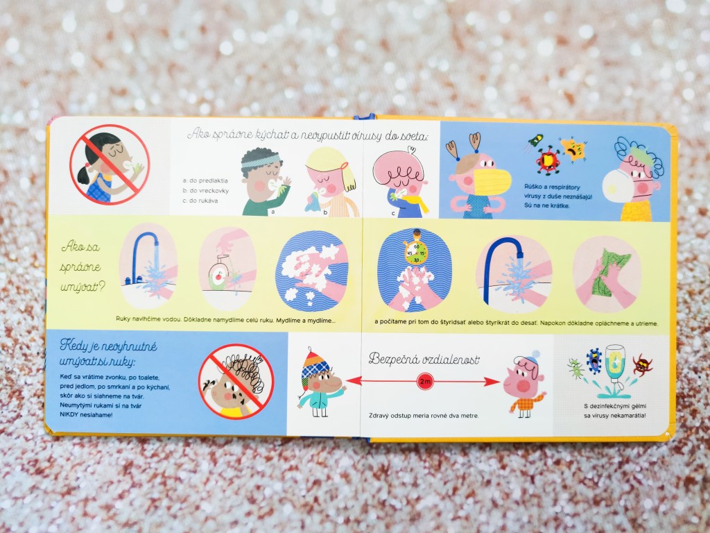 Ako sa chrániť pred niekým, kto kašle či kýcha? Dokáže k vám vírus preletieť veľkú diaľku? Na čo slúži dezinfekcia? Aj to sa v tejto knihe deti dozvedia. Naučia sa aj to, ako si správne umyť ruky či ako kašľať. Deti zistia aj to, prečo sa používa rúško. V závere knihy nájdu zhrnutie, ako sa pred vírusmi chrániť. Všetko je doplnené o milé ilustrácie. Tie deťom určite pomôžu. Na svedomí ich má ilustrátorka Alexandra Májová.