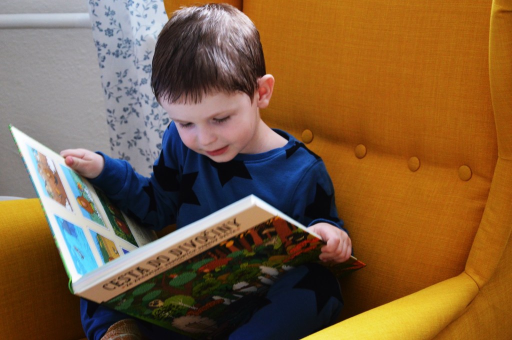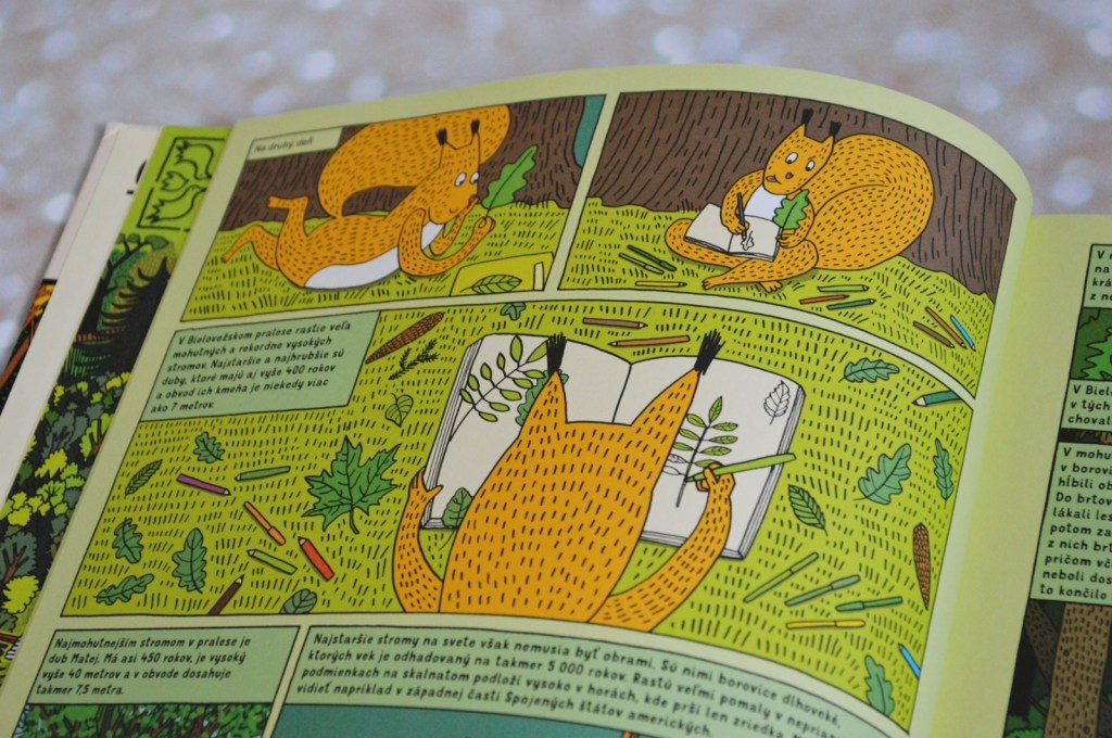 Prvé, čo ma na tejto knihe prekvapilo, bol je obrovský formát. Ani neviem, či máme doma väčšiu detskú knihu ako je Cesta do divočiny. Nielen veľkosť knihy mi vyrazila dych. Už po prvom prelistovaní sme sa s Matejkom do nej zamilovali. Nádherné, živé ilustrácie, ktoré hýria farbami.