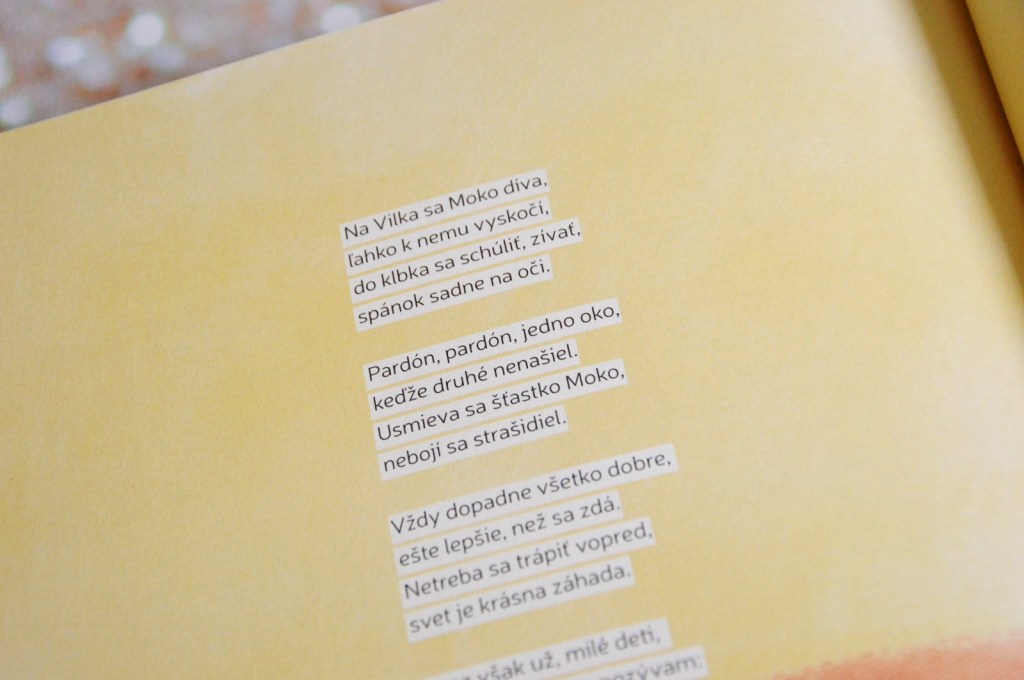 Nebudem preháňať, keď napíšem, že Moko je jedna z najkrajších detských kníh, aké som mala v rukách. O to viac sa teším, že je z pera slovenskej autorky. Kniha je rozdelená do 18 kapitol. Začínajú sa Dobrým ránom a končia Dobrou nocou. A od rána do večera zažijú deti úžasné dobrodružstvo spolu s Mokom a jeho novým kamarátom Vilim.
