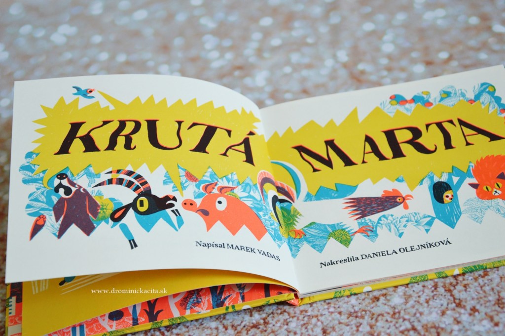 Stále viac a viac sa mi páčia detské knihy, ktoré vznikli na Slovensku. Naposledy to bola kniha Pes Moko a jeho oko. Teraz by som vám rada ukázala ďalšiu skvelú knihu z edície Alma. Krutá Marta, ktorú napísal Marek Vadas a ilustrovala Daniela Olejníková.