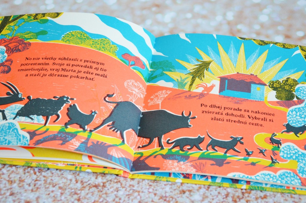 Páči sa mi, že k náprave Marty nedošlo kvôli pomste zvieratiek, ale vďaka ich výstrahe. Deťom tak môžeme ľahko vysvetliť, že ak sa nám správanie niekoho nepáči, nemusíme ho oplácať rovnako. Možno stačí niečo naznačiť, pohovoriť si, či zastať sa toho, kto sa nevie brániť. Všetko je zrozumiteľné a vtipné. Som si istá, že deti si z príbehu veľa odnesú.