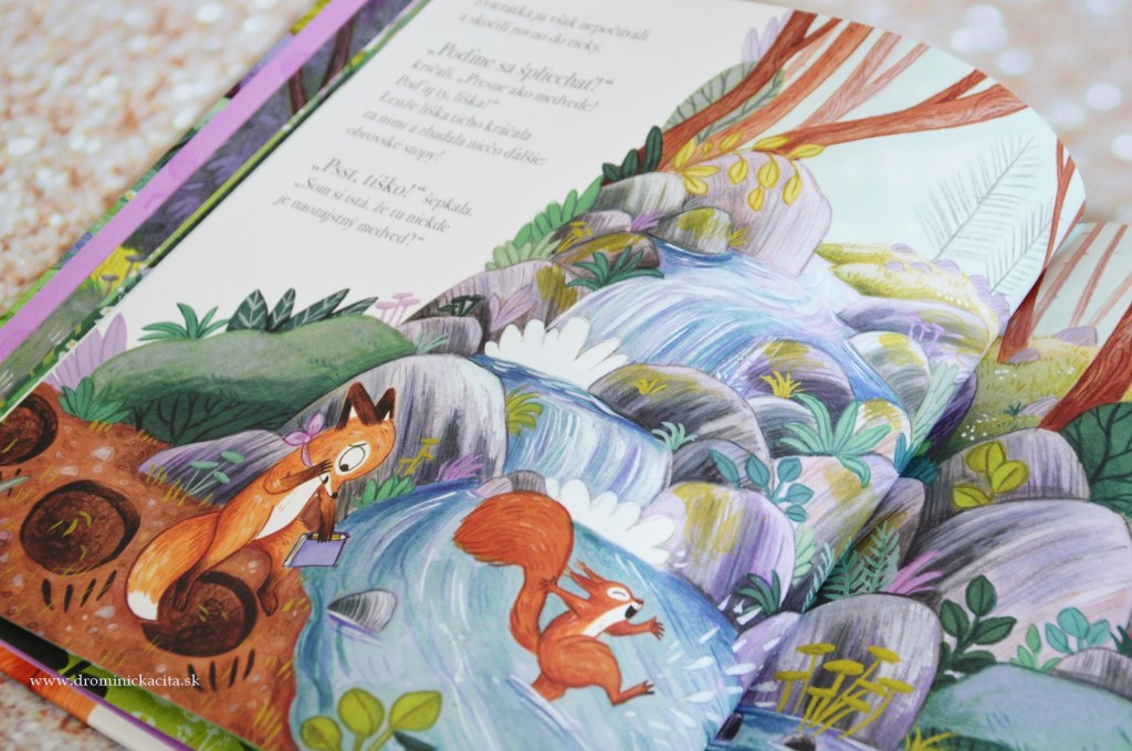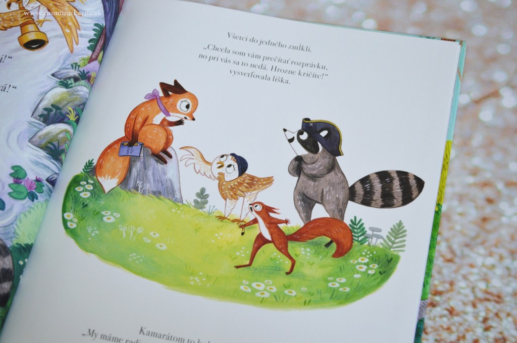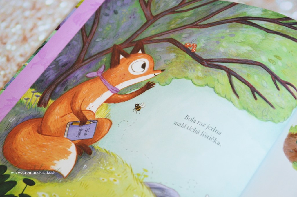 Aj líška v tejto knihe je skôr tichšia a rozvážna. Miluje knihy, príbehy a pokoj. Možno aj vy máte doma také dieťa. Vďaka líške zistí, ako sa presadiť. Alebo máte doma pravý opak. Rozjašené deti, ktoré nie a nie sa utíšiť a upokojiť od bláznovstiev. Aj tie si v knihe nájdu svoj vzor. Mne sa líškine správanie veľmi páčilo. Hoci spočiatku bola tichá, neskôr sa presadila a ukázala svoju ráznosť a rozvahu. Napokon nastal aj čas, kedy všetky zvieratká počúvali jej príjemný hlások.