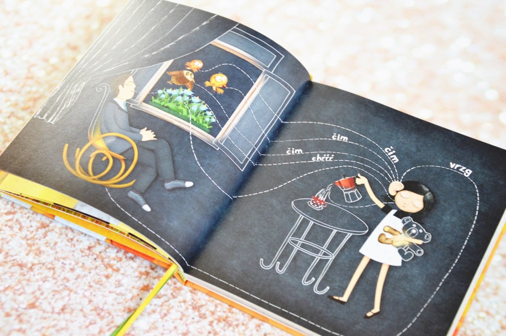 Na knihe sa mi veľmi páčili dve stužky (lacetky), ktoré umožnia čítať knihu hoci aj dvom deťom. Každý zo súrodencov si tak môže príbeh čítať sám a ľahko sa zorientuje, kde skončil. Pre jedného je zelená stužka, pre druhého žltá.