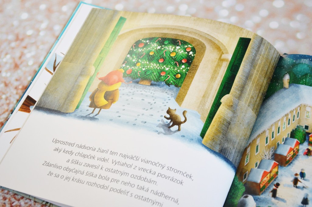 Nedávno sa ma kamarátka pýtala na vianočnú knihu pre menšie deti. Práve táto je pre ne priam ideálna. Ide o jednoduchý príbeh, ktorý je vyjadrený najmä krásnymi ilustráciami. Text v knihe samozrejme nechýba. Nie je ho veľa a tak malý čitateľ nemá problém udržať pozornosť počas celého čítania. Keď nám kniha prišla domov, Matejko si ju hneď pýtal prečítať. Po prvom dočítaní iba skonštatoval, že je pekná, ale krátka. Ja som to brala ako skvelú recenziu. Matej už vydrží aj pri dlhšom čítaní, pre menšie deti od 2,5 roka je táto kniha ideálna.