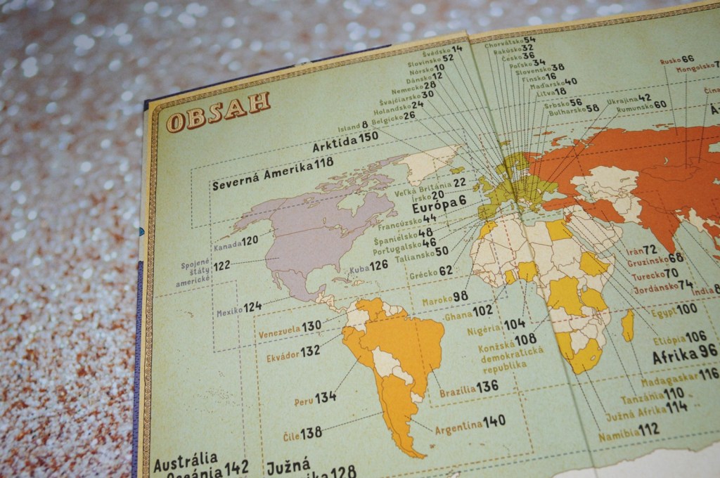 V knihe nájdete spolu až 66 krajín. Každej z nich je venovaná jedna dvojstrana. My sme si každú prezerali naozaj dôkladne a fascinovane. O každej sú tu základné informácie. Hlavné mesto, jazyk, akým sa v krajine rozpráva, počet obyvateľov, rozloha a samozrejme nechýba vlajka. Mne sa veľmi páčili najčastejšie mená pre chlapcov a dievčatá v krajine, či napríklad aj typické kroje. Na obrázkoch môžeme vidieť pamiatky, prírodné úkazy či múzeá. Veľmi sa mi páčilo aj uvedenie názvu krajiny v jej jazyku aj písme. Deti si tak môžu skúsiť napríklad napísať Čína v znakoch.