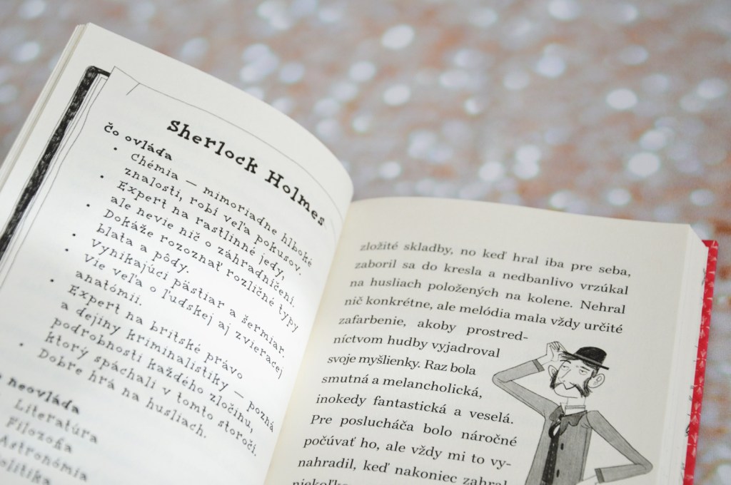 Moje prvé stretnutie s postavou Sherlocka Holmesa bola v seriáli The Elementary, kde hlavného hrdinu stvárnil Jonny Lee Miller a asistovala mu Lucy Liu. V knižnej podobe máme Sherlocka doma tiež, ale kvôli tomu, že je v obrovskom formáte, som sa do neho zatiaľ nepustila. Preto ma veľmi potešilo, keď vyšla kniha Sherlock Holmes vyšetruje: Štúdia v červenej, ktorá je určená deťom.