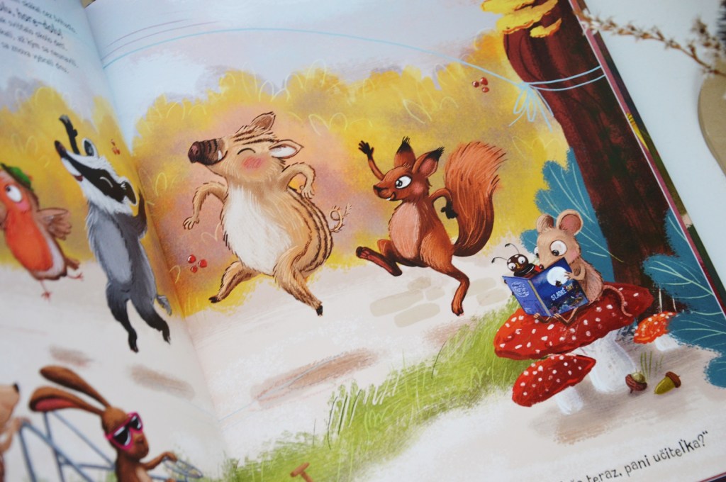 Hoci je kniha jednoduchá textom, ilustrácie sú tie, ktoré ju robia jedinečnou. Niektoré sú také, že si knihu musíte otočiť po dĺžke. Práve to fascinovalo moje deti. Ilustrácie sú krásne, farebné a veľmi veľa deťom ukážu a vysvetlia. Je v nich množstvo vtipných detailov. Ako napríklad zajačie bobky v záchode, či predošlá kniha autorky, ktorú čítajú myška s lienkou.