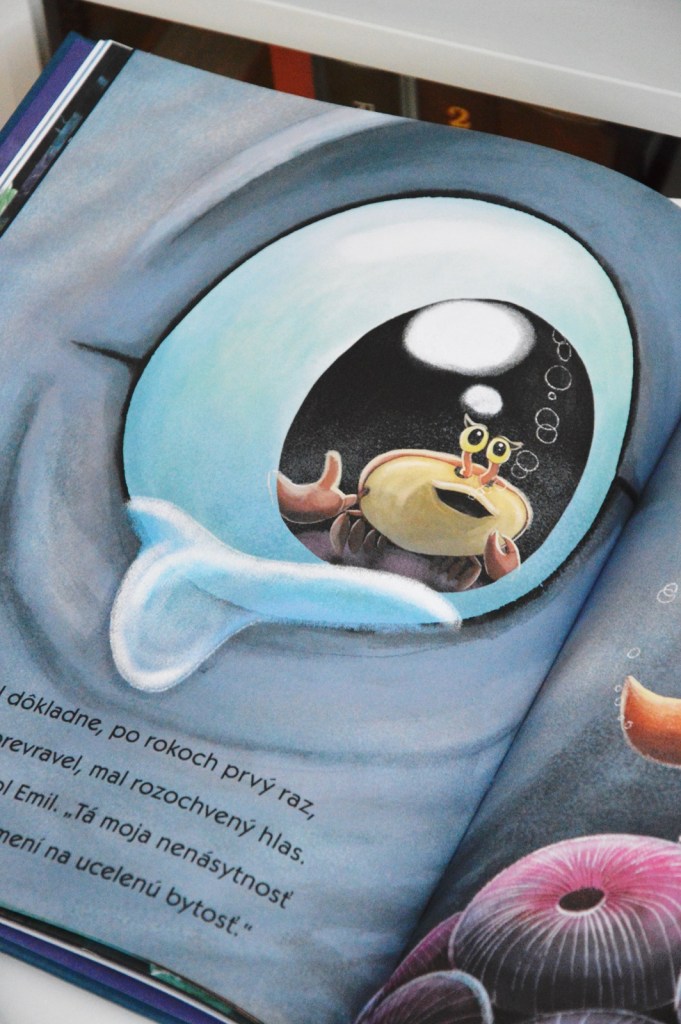 Veľmi sa mi páči aj myšlienka knihy. Emil zbiera veci a nie je šťastný. Deťom môžeme na Emilovi ukázať, že šťastie nie je iba o materiálnych veciach. On síce mal veľa vecí, ale chýbali mu priatelia. A na pohľad krásny útes bol plný hašterivých tvorov. Ani tí si nevážili, čo majú. Miesto pekného spolunažívania si robili prieky. Všetkých spojí nakoniec krásny dar. Dar, ktorý nie je materiálny a ktorý ide od srdca.