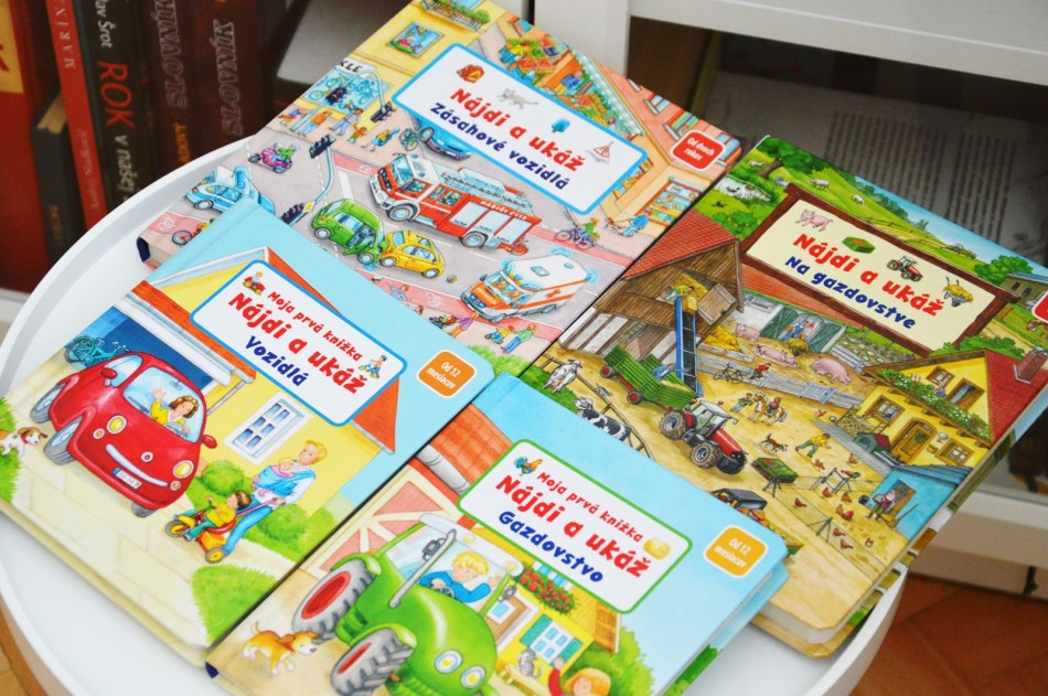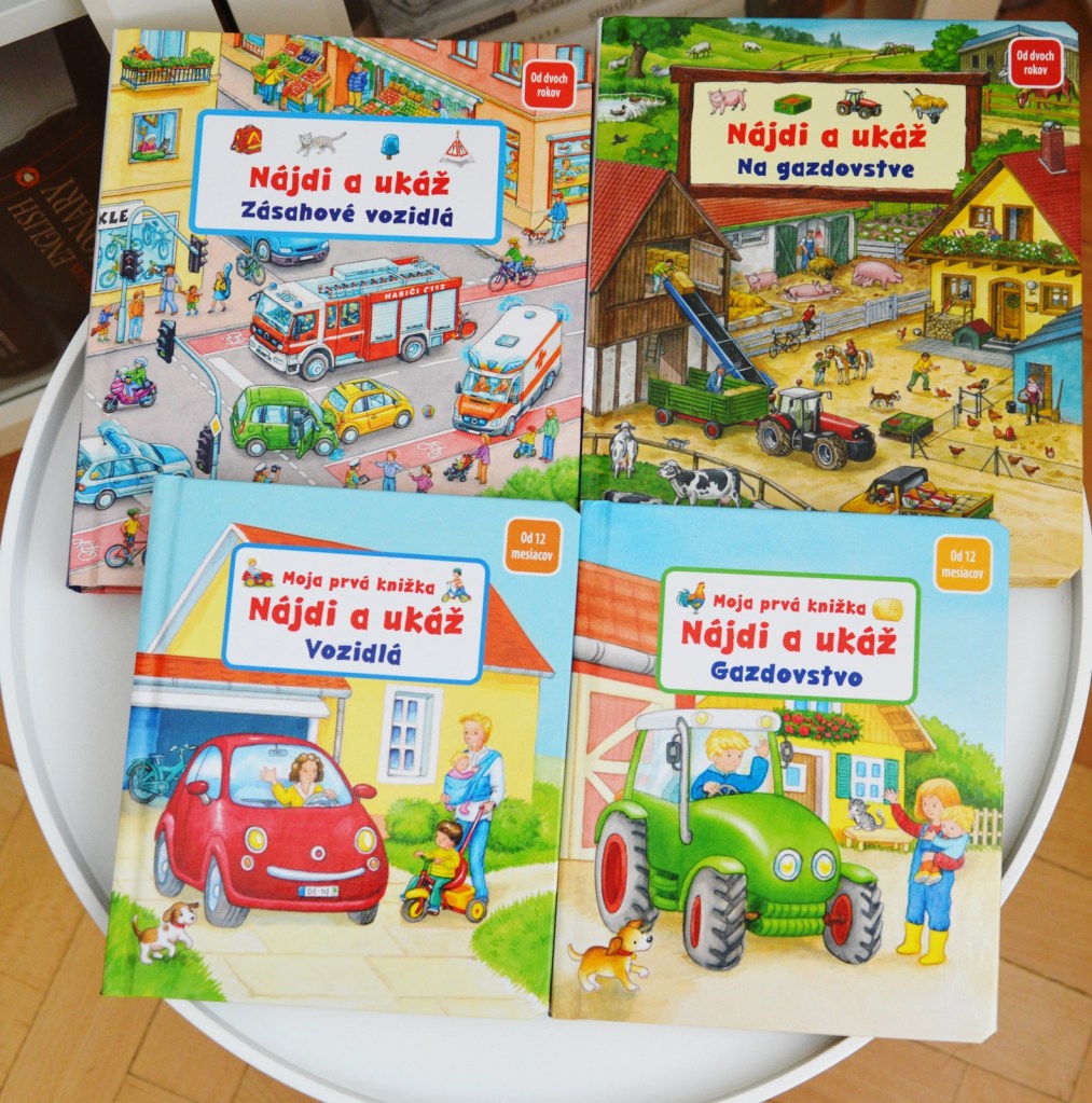 Séria kníh Nájdi a ukáž, či už pre deti od jedného roka alebo pre dvojročné, sa stala u nás obľúbenou. Hľadanie obrázkov a slov podľa zadania moje deti baví. Knihy pre menšie deti majú jemnejšie a jednoduchšie obrázky, tie pre dvojročných sú viac prepracované. Moja dvojročná dcéra si ich berie pravidelne. Prezerá si obrázky a rozpráva si, čo vidí. Strany sú pevné a ani pri pravidelnom používaní ich ešte deti neohli ani nezlomili. Niektoré knihy totiž u nás nápor mojej dcéry nezvládli.