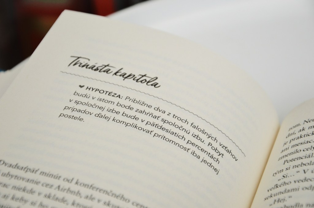 Autorka si na príbeh vybrala prostredie, ktoré nie je bežné. Aj to robí knihu inou. Univerzitné laboratória, doktorandi, konferencia. Vďaka tejto knihe by som sa aj ja rada stala vedkyňou. Pretože vďaka Olive vidíme, že aj tak trochu neohrabaná biologička má šancu na lásku. Mne osobne sa veľmi páčil inteligentný humor, ktorým autorka nešetrila. Veľmi vtipné poznámky postáv ma neraz nútili doslova vybuchnúť do smiechu. Myslím, že aj to bude jeden z dôvodov, prečo má kniha taký úspech.