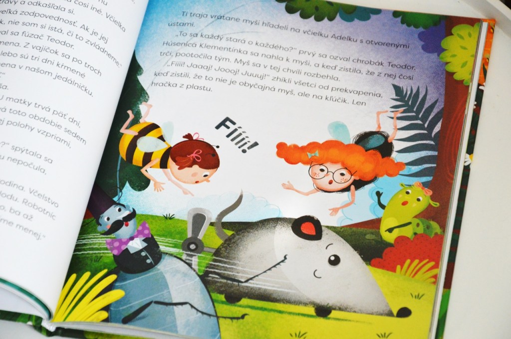 Autorka sa v knihe snaží vysvetliť aj ako fungujú včielky. Niektoré pasáže sa mi zdali zbytočné. V príbehu pôsobili akosi nasilu. Včielka Adelka sa snažila svojim priateľom vysvetliť, ako to chodí v úli. Občas sa to však do scény nehodilo a včielka tak vyznievala ako postavička, ktorá silou mocou potrebuje povedať svoje a poučovať kamarátov. Netvrdím, že tieto informácie nie sú zaujímavé. Síce sú, ale miestami boli vysvetlene komplikovane. Obávam sa, že nie všetky deti tieto časti pochopia.
