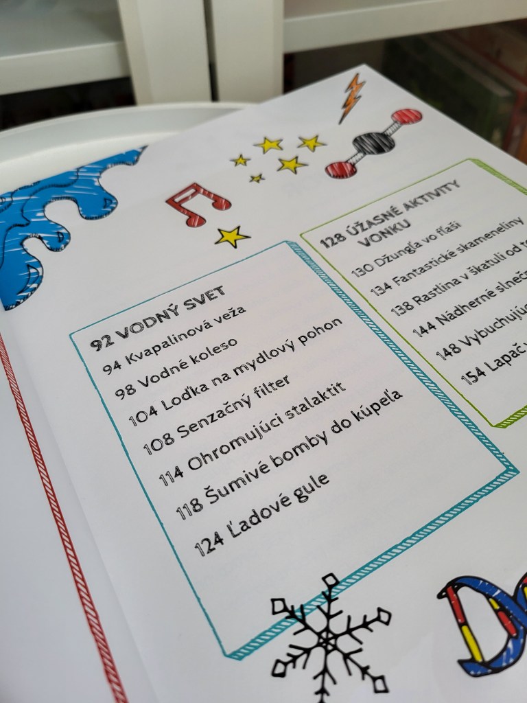 Aj napriek tomu som ju brala s rezervou. Keďže je určená starším deťom, bála som sa, že pre menších mysliteľov v nej veľa vhodného obsahu nebude a pokusy budú príliš náročné. Opak je však pravdou. Pokiaľ budete deťom pomáhať, všetko zvládnu aj tie od 5 alebo 6 rokov. V úvode nájdete predhovor autora, ktorý vysvetľuje, prečo sa stal vedcom. Pridáva pár informácií z histórie a nezabúda ani na upozornenia o bezpečnosti pri pokusoch.