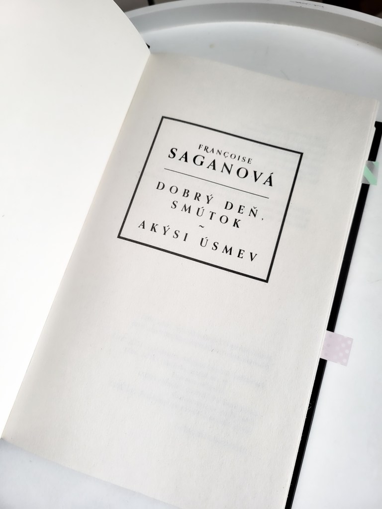 Vydavateľstvo Slovenský spisovateľ prináša v krásnej reedícií v poradí druhú knihu od francúzskej autorky Françoise Saganovej. Kniha v sebe ukrýva dva tituly – Dobrý deň, smútok a Akýsi úsmev.