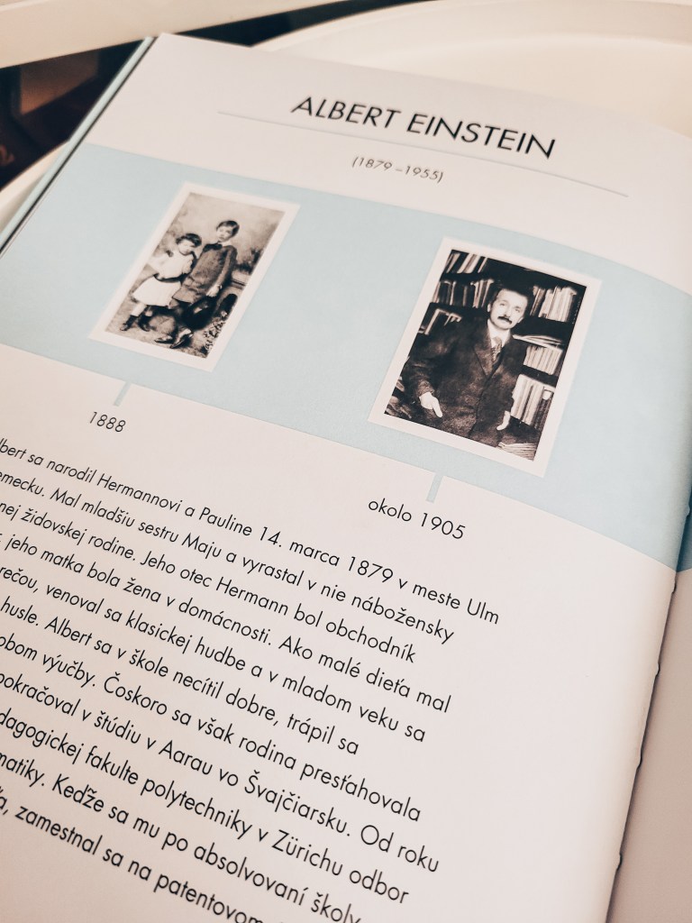 Meno Alberta Einsteina tiež netreba veľmi predstavovať. Príbeh o chlapcovi, ktorý až do svojich štyroch rokoch nerozprával a tak nemal žiadnych kamarátov. Iba svoju trpezlivú sestru. Záujem o vedomosti v ňom vyvolal darček od otca. Kompas. Albert chcel vedieť, ako funguje a prečo ručička stále ukazuje na sever. Neskôr študoval matematiku a fyziku a po skončení štúdií sa zamestnal na patentovom úrade. Postupne prichádzal s teóriami a objavmi, ktoré boli prelomové. Albert Einstein bol génius a stal sa nepochybne slávny. Svoju slávu však využíval aj na boj proti rasizmu. Aj príbeh tohto vedca je inšpirujúci. Deťom môžeme ukázať, kam ich môže doviesť ich zvedavosť. Je preto na nás rodičoch, aby sme detské otázky, ktoré sa na nás valia, nenechali bez povšimnutia. Práve naopak, podporme deti v ich rozvoji. Mne sa okrem iného na jeho príbehu páči aj jeho ľudskosť. Je dôležité ukázať deťom, že iná farba pleti či náboženstvo z nikoho nerobí horšieho človeka.