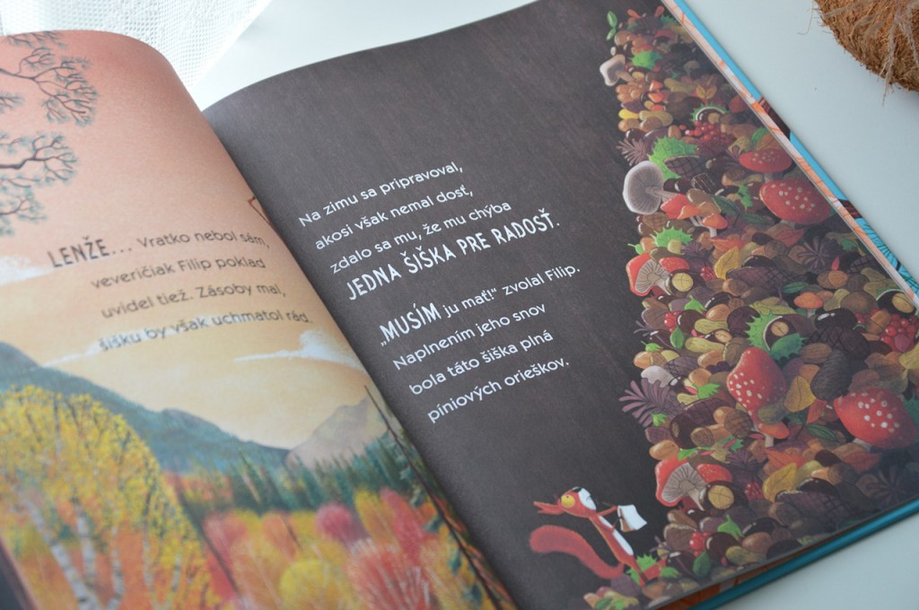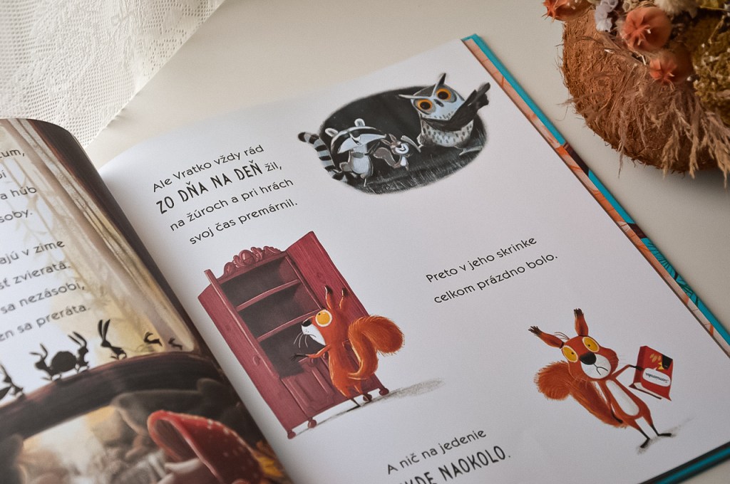 Keď nám kniha prišla domov, ako prvá ju ukoristila trojročná dcéra. Ju čítanie zatiaľ až tak veľmi nebaví, ale obrázky si listovala s veľkým nadšením. Ona si vymyslela svoj príbeh a tak máme doma niekoľko verzií rozprávky o veveričkách. Keď sme si začali čítať so synom, knižná verzia sa nám obom veľmi páčila.