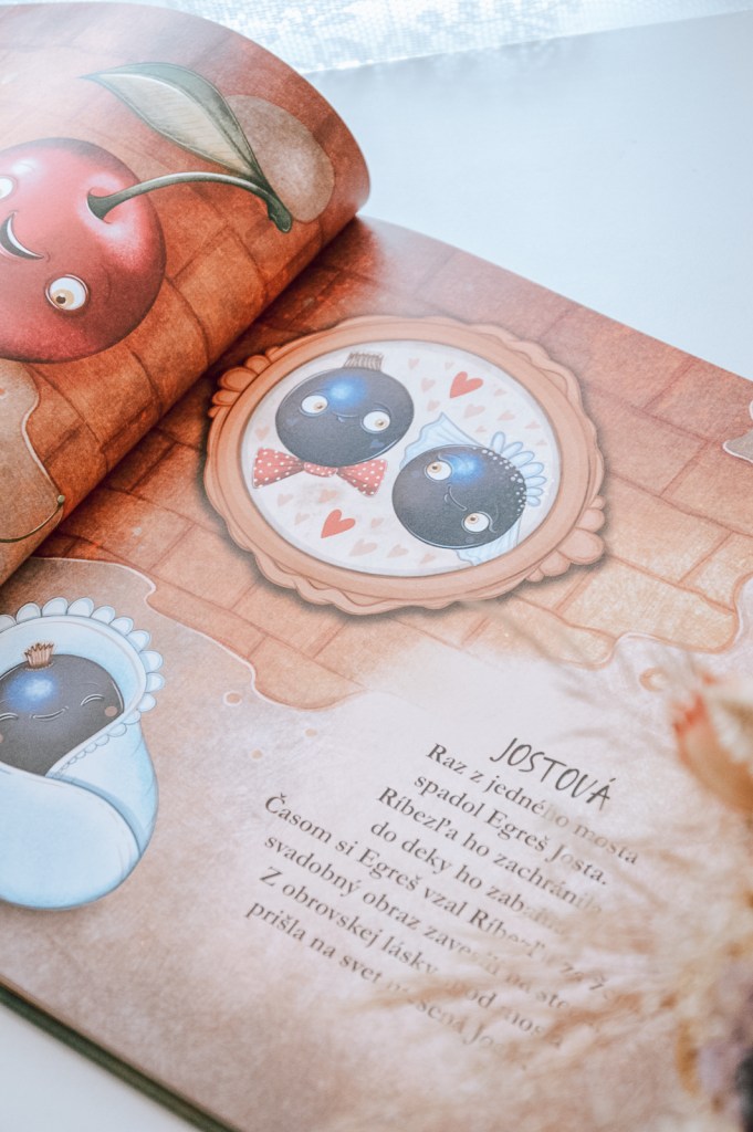 V knižke nájdeme básničku slivkovú, višňovú, pomarančovú, ale aj cesnakovú, paradajkovú a čili. Deťom sa tak pripomenú známe chute, ale aj tie menej známe ako josta, topinambur alebo mangold.