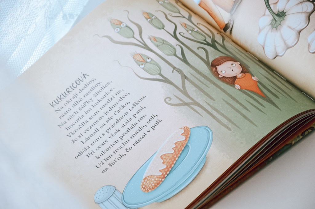 Roztomilé básničky dotvárajú krásne ilustrácie. Sú hravé, vtipné, plné farieb. Ak by deti niektoré ovocie či zeleninku nepoznali, obrázky im ich bez problémov priblížia. Kniha by sa dala využiť pri práci v záhradke. Ak niečo z knihy pestujete, môžete si s deťmi vždy prečítať básničku. A potom si pozrieť ovocie a zeleninu zblízka. A samozrejme ich aj ochutnať. Nemáte záhradu a nič nepestujete? Nevadí, knihu vytiahnite po návrate z nákupu. Deti môžu popri vykladaní nákupnej tašky hľadať v knihe to, čo ste práve z obchodu priniesli.