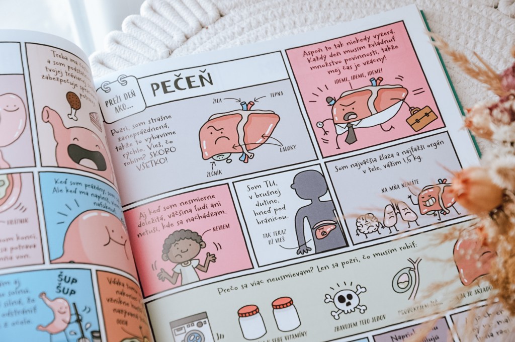 V časti o ľudskom tele sa deti premenia na malých bádateľov a spoznajú fungovanie mozgu či prežijú deň s okom. Niektoré témy sú doplnené o stránku s názvom “zblízka”, kde sa o časti tela alebo zvierati dozvedia ešte viac fascinujúcich informácií. Deti si zaručene zamilujú aj tie “nechutnejšie” témy, ako sú hovienka, prdy či vyrážky, ktoré sú prezentované vtipným a pútavým spôsobom. Pri čítaní sa tak zabavia nielen oni, ale aj rodičia.