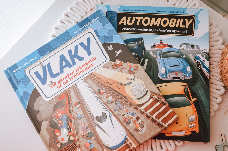 Moje staršie dieťa má veľmi rado encyklopédie a doslova nasáva fakty rôzneho druhu. Úplne najviac ho fascinujú dopravné prostriedky. Preto sa potešil, keď nám do knižnice pribudli knihy od Lorencza Mora Vlaky a Automobily.