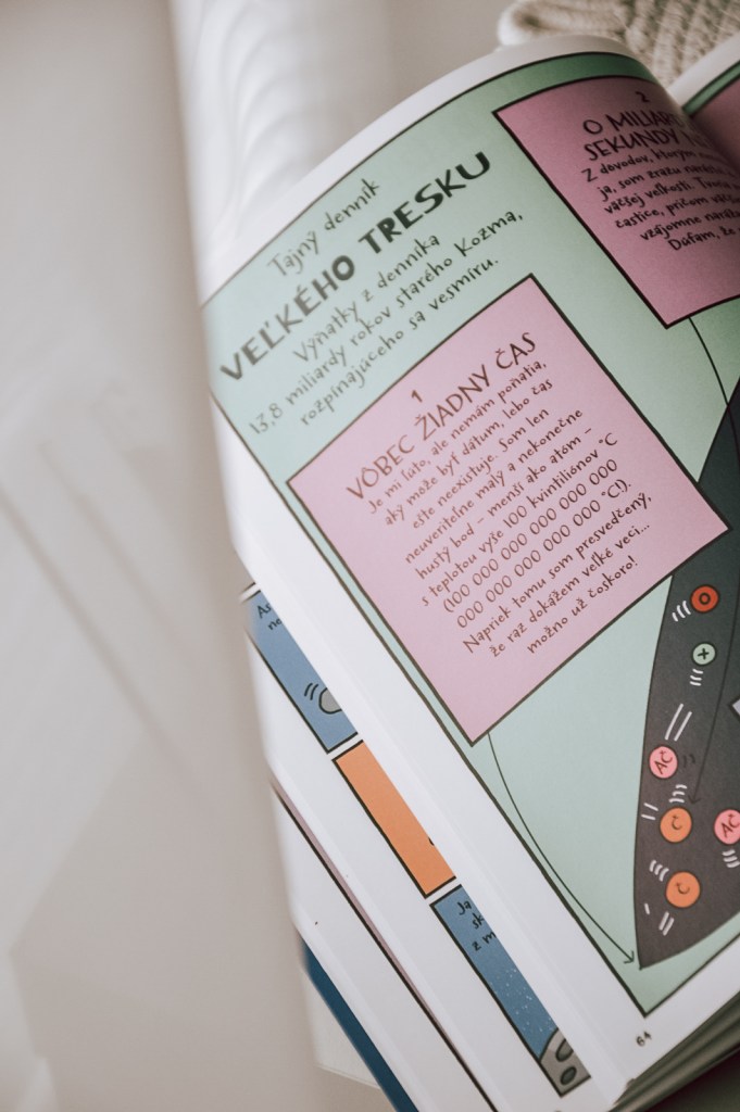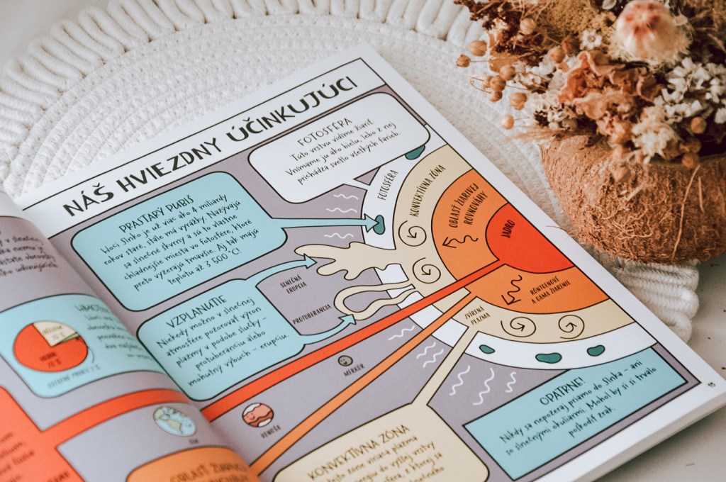 Už z názvu i obálky je jasné, čím sa bude kniha zaoberať. Rozdelená je do troch hlavných celkov – slnečná sústava, ďaleký vesmír a lety do vesmíru. Každý celok obsahuje niekoľko kapitol, ktoré deťom pútavo priblížia vesmír a všetko, čo s ním súvisí. V kapitole nazvanej Preži deň ako … sa deti dozvedia, ako v jednom dni niektoré fenomény vesmíru fungujú. V kapitole „Zblízka“ nájdu doplnkové informácie. V kapitole „Tajný denník“ sa dozvedia ďalšie poučné a prekvapujúce skutočnosti. Komiksové spracovanie knihy deti isto zaujme a udrží dlhšie ich pozornosť. Mladí astronómovia budú určite nadšení.