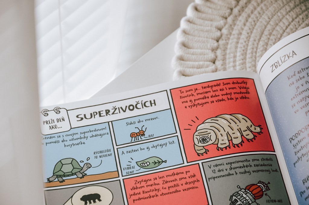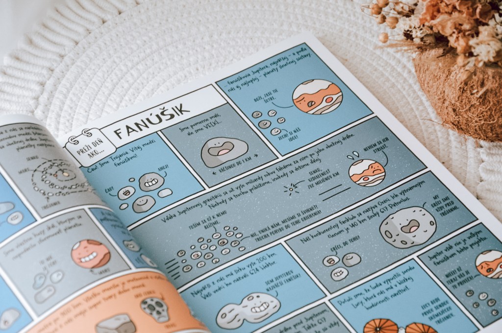 V knihe Preži deň ako astronaut, Mars či kométa je veľmi pútavo a zábavne spracovaná vesmírna téma. Deti určite zaujme komiksový štýl a vtipné ilustrácie. V knihe nájdu množstvo zaujímavých faktov a pikošiek. Nevyhýba sa odborným výrazom, ale všetko je dostatočne zrozumiteľné. Odporúčam milovníkom vesmíru od 8 až 9 rokov.