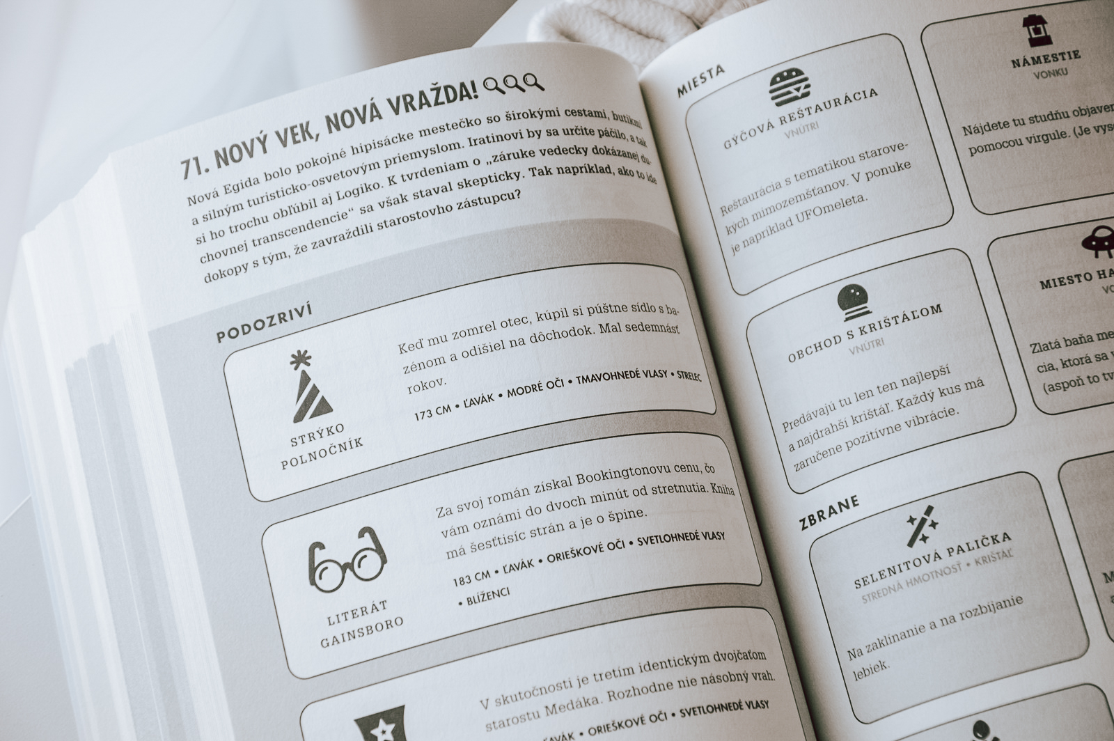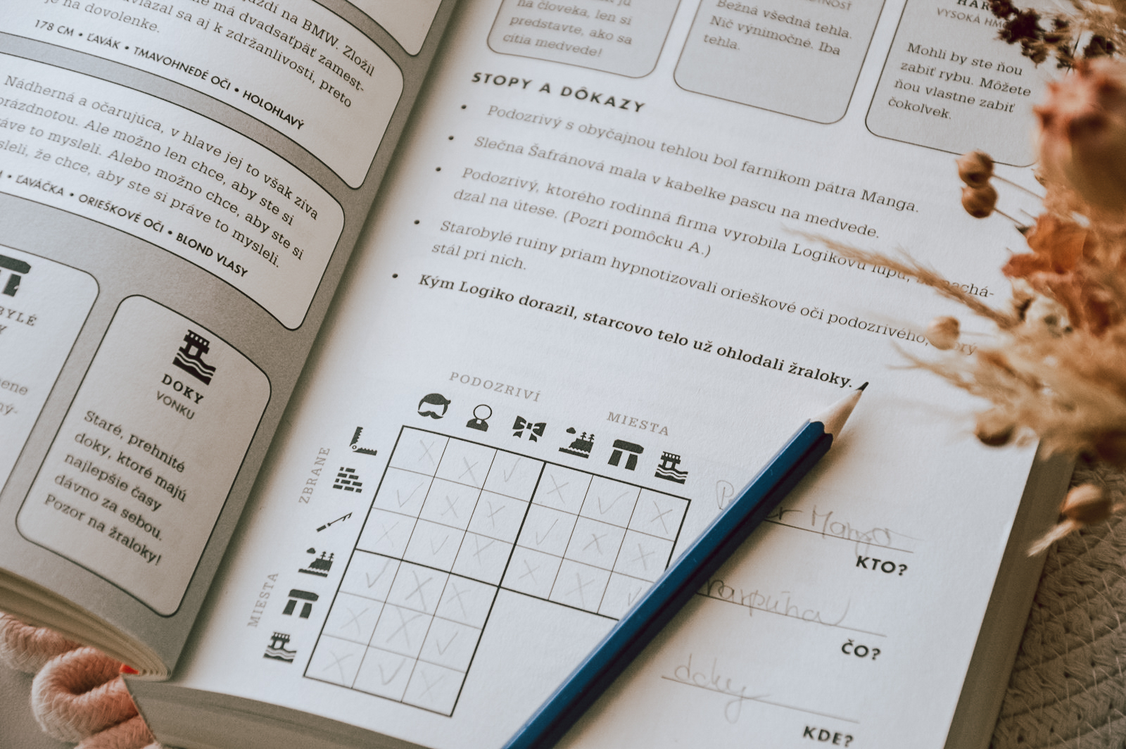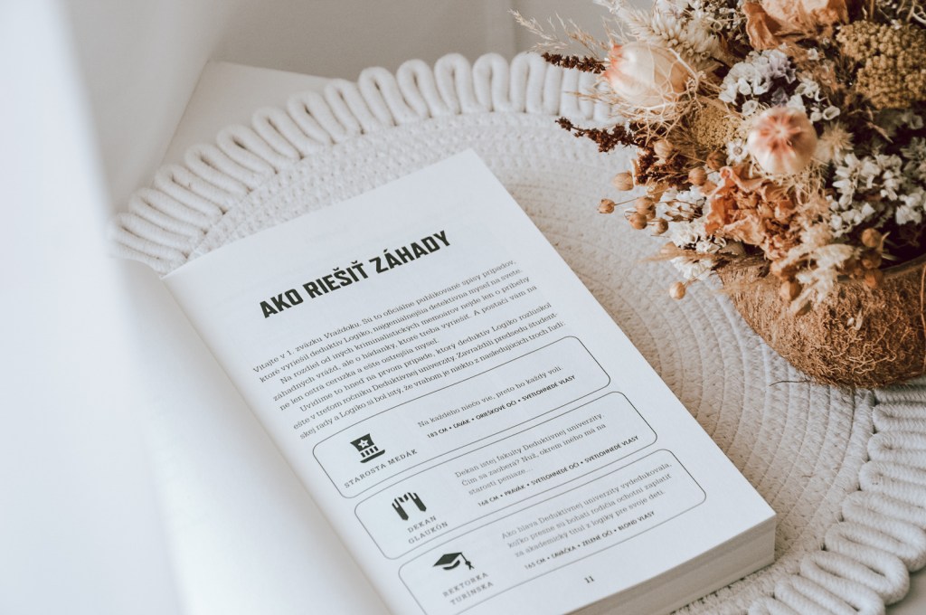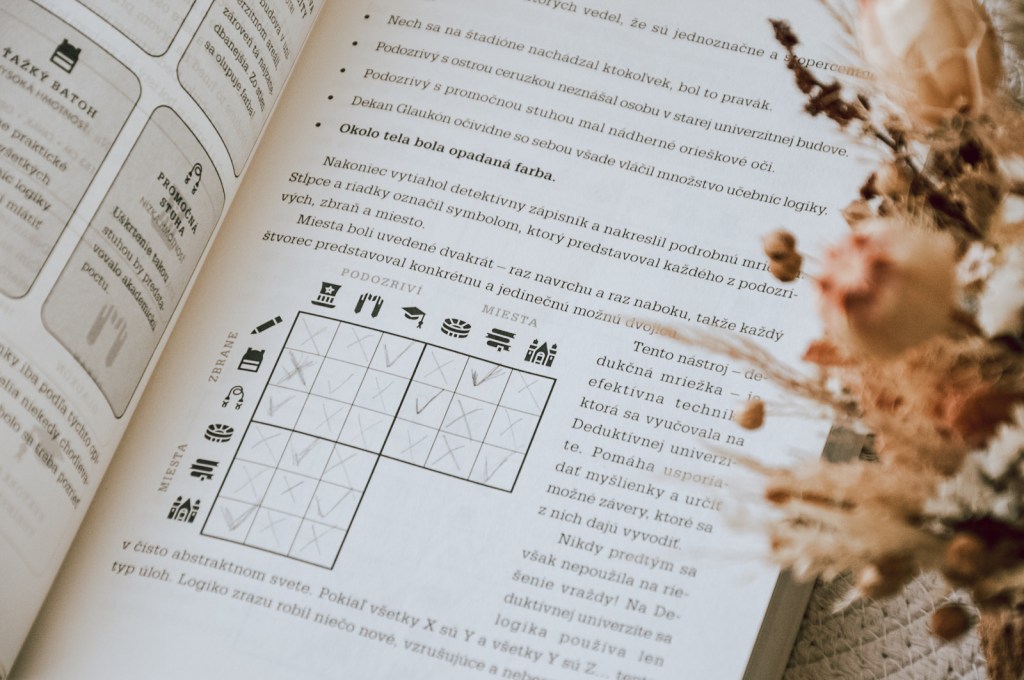 Mäkká obálka ukrýva v sebe mnoho záhad. Na prvýkrát mnou prebehli pochybnosti, či nebudú prípady nad moje sily. Našťastie deduktív Logiko, najgeniálnejšia detektívna myseľ na svete, mi ochotne poradil. Úvodná kapitola nás prevedie všetkými dôležitými informáciami a vysvetlí, ako na to. Každý prípad obsahuje podozrivých, miesta činu a potenciálne zbrane, ku ktorým sa viažu zaujímavé detaily. Najužitočnejšou časťou boli fakty, ktoré boli určite pravdivé. Otázkou však zostáva, ako si so všetkými týmito informáciami poradiť? S tabuľkou v ruke a pod vedením Logika vyriešite svoj prvý prípad a pripravíte sa na ďalšie výzvy. Je to ako zahriať si detektívne svaly pred veľkým dobrodružstvom. Každý prípad obsahuje tabuľku, do ktorej si budete zaznamenávať všetky dôležité informácie. Odporúčam začať prvým prípadom spolu s Logikom a sledovať každý jeho krok. Keď raz pochopíte systém, ďalšie prípady už pôjdu oveľa ľahšie.