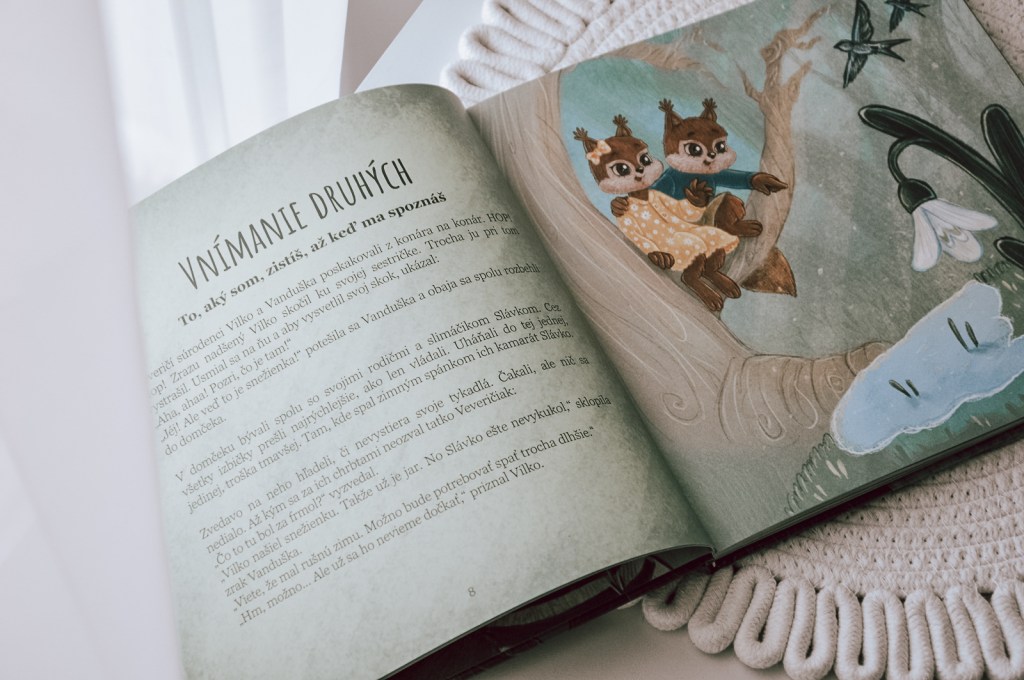Predošlé knihy o Slávkovi boli veľmi dobre spracované a priniesli pre deti množstvo ponaučení. Preto sme neváhali a veľmi radi sme si prečítali aj nové príbehy so slimáčikom a jeho kamarátmi. Hneď v predsádke si deti môžu pozrieť, koho v tejto knihe Slávko stretne. Nechýba ani pár slov pre rodičov od autorky. Ako knihu používať a čo sa v nej deti naučia. Tentoraz sa zamerala na vzťahy a v spolupráci so psychologičkami vybrali päť aspektov, ktoré sú dôležité pri ich budovaní a udržiavaní – vnímanie druhých, odpustenie, nezhody a ich riešenie, hranice a pravidlá, súdržnosť. Posledná kapitola je venovaná pozornosti. Možno aj nám rodičom pripomenie, že treba svoj čas venovať svojim najbližším, aby sa necítili osamelo.