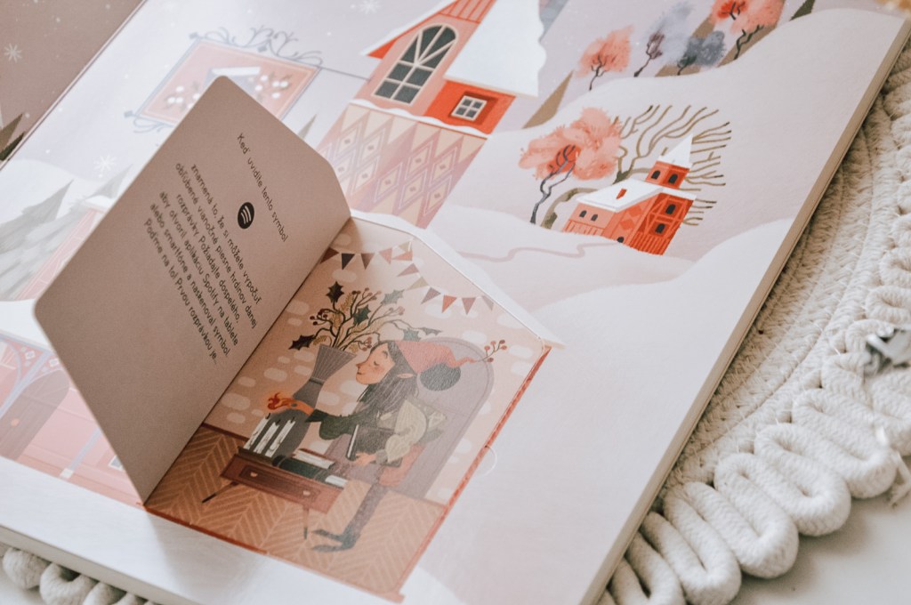 Každá ďalšia dvojstránka je venovaná jednej rozprávke. Nechýba krátky text, aby deti vedeli, ako sa v rozprávke chystajú na Vianoce. Potom už je na rade otváranie okienok. Každé skrýva iné prekvapenie. Raz je to recept, kreatívna činnosť, pesnička či príbeh. Odporúčam preto nahliadnuť do okienka hneď ráno. Ak chcete s deťmi tvoriť či piecť, viete si pripraviť potrebný materiál.
