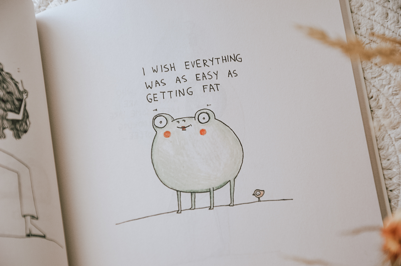 Na Instagrame sa k jej obrázkom vraciam pravidelne. Niekedy, keď nemám práve najlepší deň, si jej profil vyhľadám a len tak nimi prechádzam. Nabíjam sa tak pozitívnou energiou. Príjemne ma prekvapilo, keď som sa dozvedela, že sú dostupné aj knihy. Kúpila som si jednu slovenskú. Hoci boli ilustrácie perfektné a myšlienky v knihe za nimi nezaostávali, viac sa mi páčia anglické verzie.