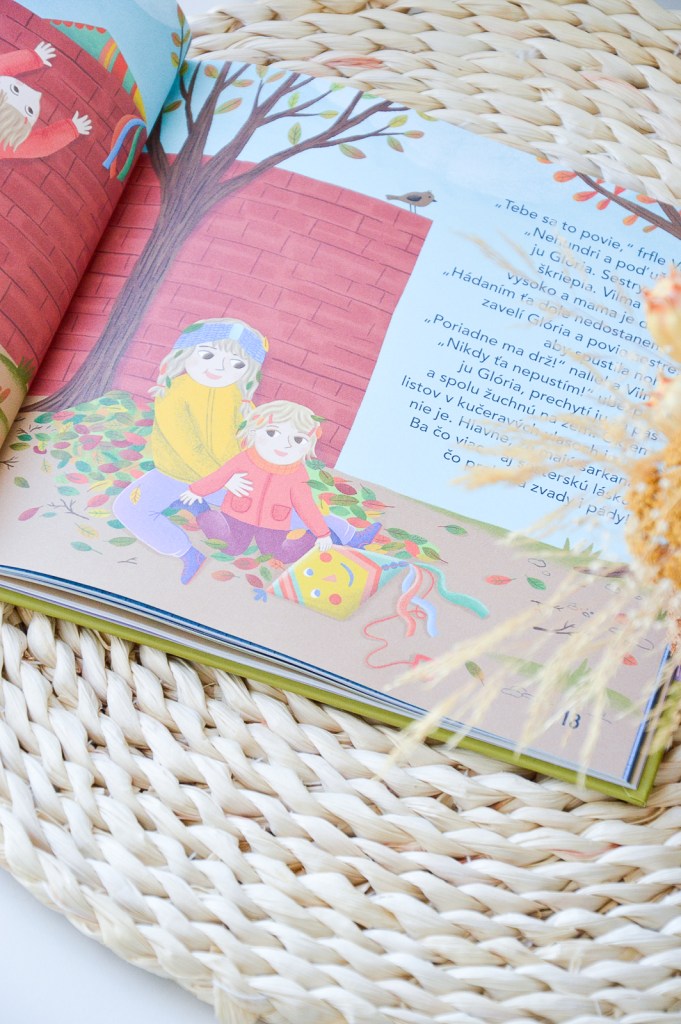 V každom z piatich príbehov sa deti vďaka Glórii a Vilme niečo naučia. V prvom z nich sa dievčatá tešia, že si pôjdu púšťať šarkana. Problém je, že majú iba jedného. Preto hneď v úvode sledujeme konflikt, ktorý sa sestrám podarí vyriešiť. Neskôr na ihrisku sledujeme aj správanie ostatných detí. Vilma sa zabudla spýtať chlapčeka, či si smie požičať kolobežku. Ten zase nechal ich šarkana vysoko na múriku. Pri čítaní sme si s dcérou mohli vysvetliť, ktoré správanie nebolo pekné a ako by sa mala ona správať k iným deťom.