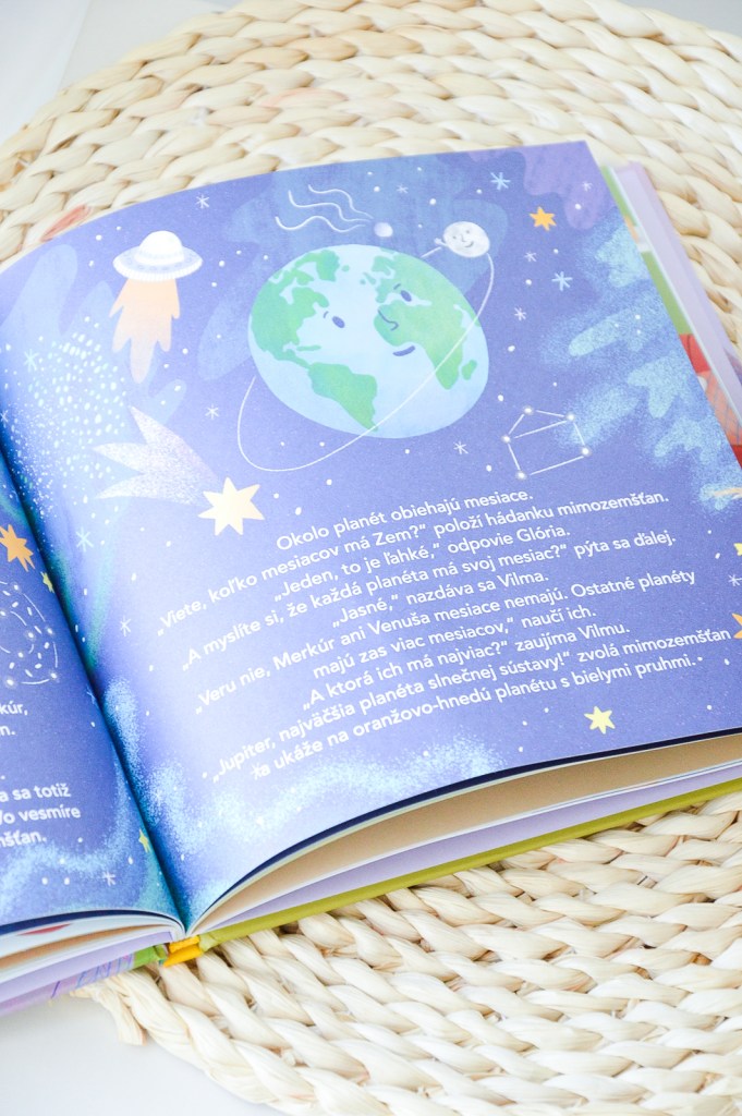 V treťom príbehu sa Glória a Vilma prenesú do vesmíru. Moja Adelka mi hneď povedala, že sa im to musí snívať. A tak aj bolo. Autorka deťom približuje niekoľko informácií o vesmíre a jeho fungovaní. My sme si zopakovali planéty. A hoci išlo o zaujímavú kapitolu, príliš sa mi do knihy nehodila.